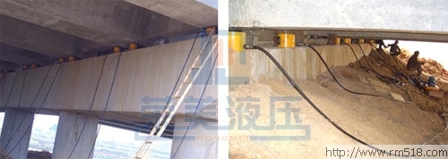 采用薄型千斤頂或自鎖式千斤頂頂升橋梁,更換墊層,放回新的橋墩位置。看起來液壓似乎能做任何事情,當(dāng)面對(duì)這一類工程問題時(shí),系統(tǒng)設(shè)計(jì)就成為了關(guān)鍵的問題,通過我們與客戶之間的密切合作以及我們在該領(lǐng)域豐富的知識(shí)經(jīng)驗(yàn)積累,可以使這類工程取得圓滿成功。同時(shí)配備不同長度的高壓油管和合適的分配閥,采用一泵拖多頂(拖四、拖六、拖八、拖十等)的方法以滿足適應(yīng)施工現(xiàn)場的作業(yè)要求。