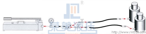 .使用1臺(tái)具有兩個(gè)或更多接口的分配器,可同時(shí)驅(qū)動(dòng)兩臺(tái)以上的單作用千斤頂。